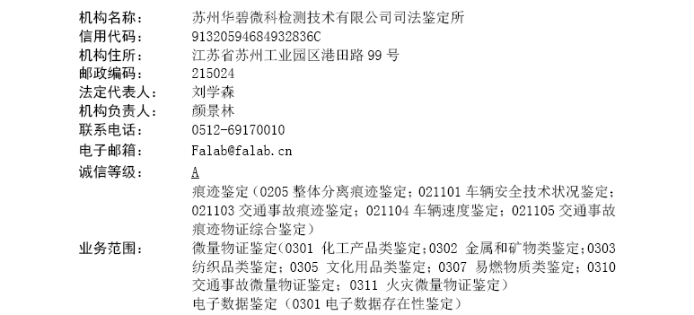 華碧司法鑒定所作為國(guó)內(nèi)權(quán)威的綜合鑒定服務(wù)機(jī)構(gòu),涵蓋產(chǎn)品質(zhì)量鑒定、微量物證鑒定、痕跡鑒定(道路交通事故鑒定)、電子數(shù)據(jù)鑒定、價(jià)格評(píng)估等。以“科學(xué)、客觀、公平、公正”的理念,讓人民群眾在每一個(gè)司法案件中都能感受到公平正義。十余年間獲得全國(guó)30多個(gè)省市和地區(qū)超過(guò)3000家法院、公安、檢察院、仲裁委員會(huì)、應(yīng)急管理等機(jī)構(gòu)的認(rèn)可。華碧鑒定將不忘初心為實(shí)現(xiàn)公平正義砥礪奮進(jìn)。